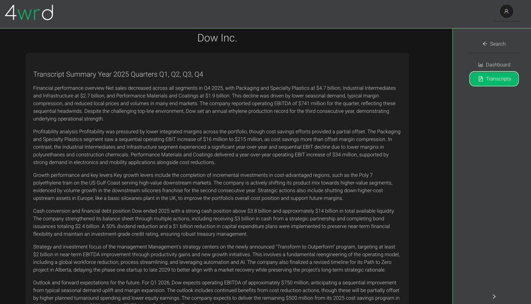 Get full access to 4wrd for 15 days: company comparisons, natural-language search, and earnings transcript summaries. After your trial, you can pick a paid plan to keep going.
